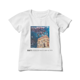 レディースTシャツ - L - 白この商品はpixivFACTORYで作られた商品です。サンプル画像は完成イメージのため、実物と異なる場合があります 商品名 レディース Tシャツ 白 凱旋門にそびえ立つレインボージブラ 世界中を旅するレインボージブラ 星きらら 熊本のアーティスト