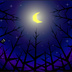 真夜中の森を月明かりが照らします。静寂の中で、枯れ葉が風に舞う音だけが響きます。「もうみんな寝ているよ、早くオヤスミ」森の番人のフクロウがささやいています。