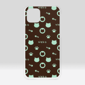 ねこねこモノグラム クリアiPhoneケース ハードケース - チョコミント