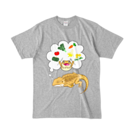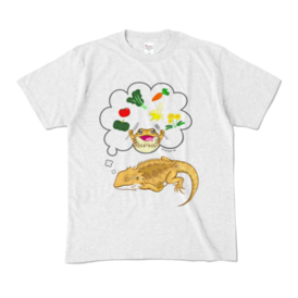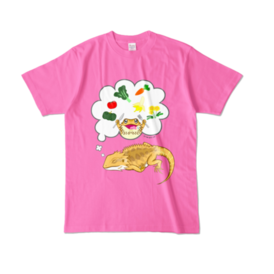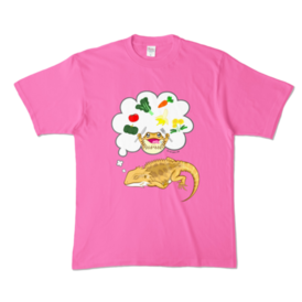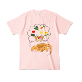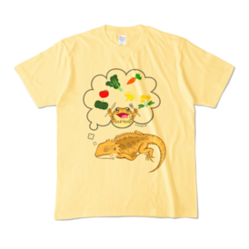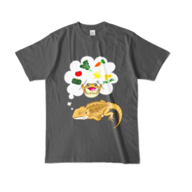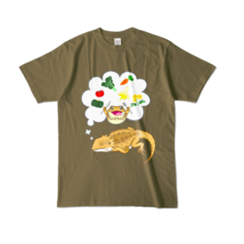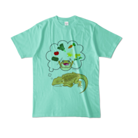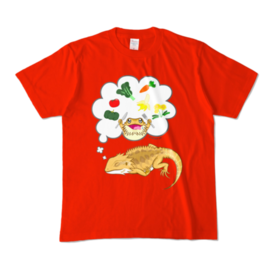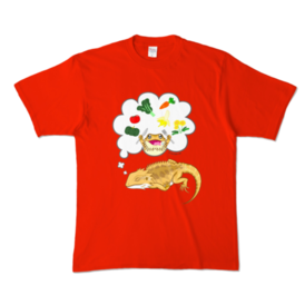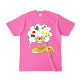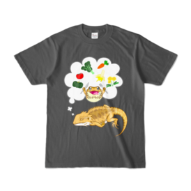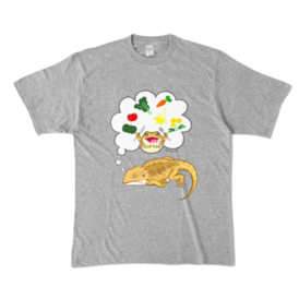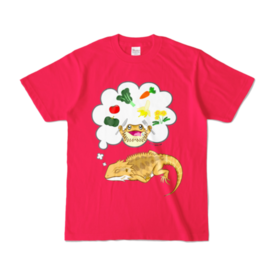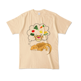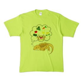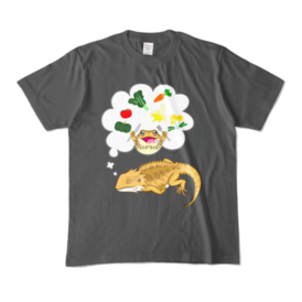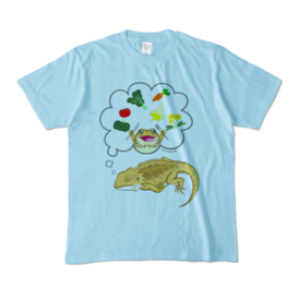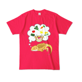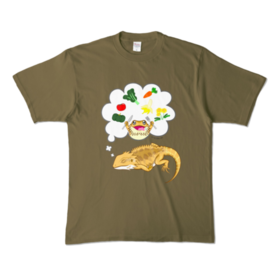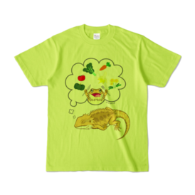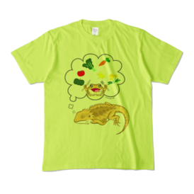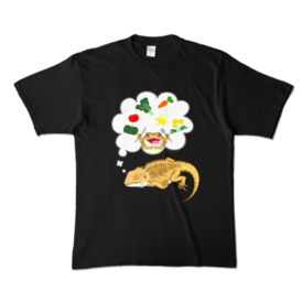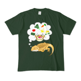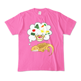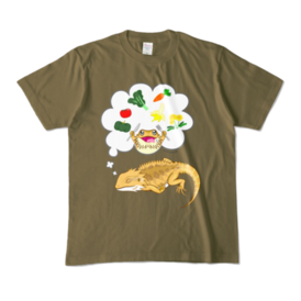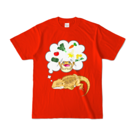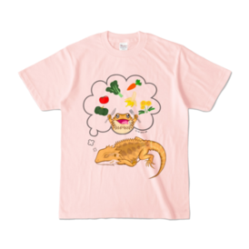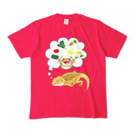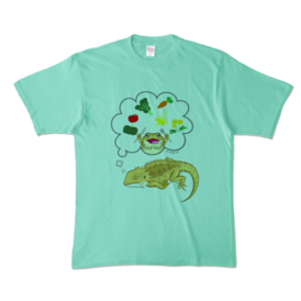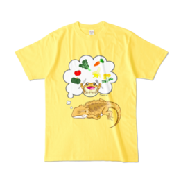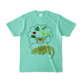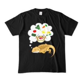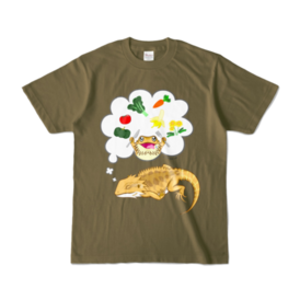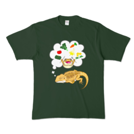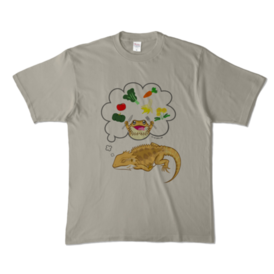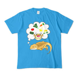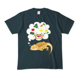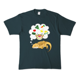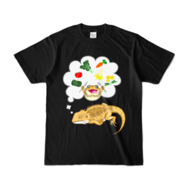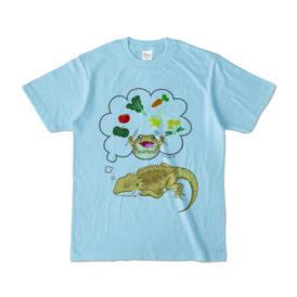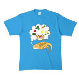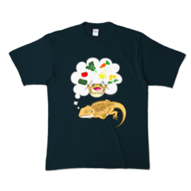 フトアゴヒゲトカゲが寝ている時によく夢を見ているようなしぐさをしているのを見ます。 こんな夢見てるのかなー?と想像しながら描きました。 いつもはデフォルメですがちょっとリアル目な寝てるフトアゴちゃんと、夢の中で大好物に囲まれてとてもうれしそうなフトアゴちゃんです。 夢見るフトアゴちゃんが前面にプリントされたカラーTシャツです。 世界中で大人気のペット、フトアゴヒゲトカゲが好きな方や、爬虫類が好きな方におすすめなグッズになっています。 フトアゴを知らない人に広めるのにももってこいのアイテムになっています。 爬虫類好きの人にプレゼントにも最適です。この商品はpixivFACTORYで作られた商品です。サンプル画像は完成イメージのため、実物と異なる場合があります。
