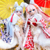 ✼••┈┈••✼••┈┈••✼ ••┈┈••✼ 月に酔い、夢を見た夜のあと、 朝の光の中、狐さまは仲間たちと肩を並べ、 舞い散る金の葉に微笑みをこぼす ✼••┈┈••✼••┈┈••✼ ••┈┈••✼ ◆衣装セット内容◆ ヘアアクセサリー *1ペア もふもふお耳(白)*1ペア もふもふショール(白)*1点 着物トップス*1点 着物スカート(ミニ丈) *1点 蝶々羽織*1点 作り帯(胴帯)*1点 作り帯(リボン) *1点 ソックス *1ペア ☆おまけ☆おしっぽ(白)*1点 ☆おまけ☆和傘 *1点 ※ドール・シューズ・撮影小物などは付属品ではありません。 ◆テスト済サイズ◆ MDD(s・m・l胸通用・もち足OK) imomodoll(l胸OK) SDM KUMAKO ◆注意事項◆ ◇こちらの商品は家庭用ミシンで制作した手作り品になります。 ◇同じ生地を使用して同じデザインのお洋服を制作することがありますが、柄の配置や細かい部分(レース、結び目、ボタンなど)は写真と全く同じではない場合があります。 ◇システム上、発送前のキャンセルはご自身でBOOTH事務局にお問い合わせいただく形になります。 ◇ハンドメイド品であるため、発送後のお客様の都合による返品・交換は致しません。初期不良の場合のみ対応させていただきます。 ◇当方の作品は、全ての生地について色移りテストを行い、通常の使用で問題のない素材のみを使用しております。※全てのボディで色落ちが完全に防げるわけではありません。 高温多湿を避け、長期間着せたままにしないようご注意ください。 通常、ボークス製MDDに3日間以上着せたままで色移りがないか確認していますが、商品使用中に発生した色移りについては、当方では責任を負いかねますので、ご了承ください。 ◇ハンドメイド作品の個体差や至らない点について、事前にご理解いただいた上でご購入をお願いいたします。 ご不明な点がございましたらXのDM或はショップのお問い合わせからご連絡ください。 長文お読みいただきありがとうございました(ღ˘⌣˘ღ) ・・・・・・♪♪他の作品はこちらへ♪♪・・・・・・ ◆X(Twitter) ◆ @Rosenlia_doll https://twitter.com/Rosenlia_doll ◆ドール小物ショップ◆ NiNa https://ninadoll.booth.pm/