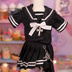 ・ショーパンの上に巻きスカートを合わせたセーラー服です。 ・胸元のリボンと十字架は取り外しできません。 ・巻きスカートにチェーンの飾りが付いています。 ・トップス、ボトムス共にスナップボタン留めです。