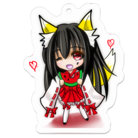 狐の巫女さんスイカを食べる アクリルキーホルダー