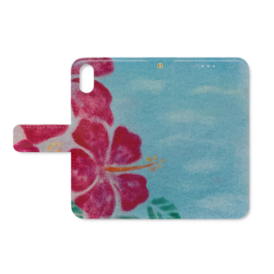 iPhoneXS手帳型ケース パステルハイビスカス