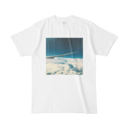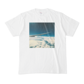 Tシャツ - XL - 白この商品はpixivFACTORYで作られた商品です。サンプル画像は完成イメージのため、実物と異なる場合があります。 旅客機の機窓から撮影した空をTシャツにプリントしました。 主翼も写っているのでヒコーキ好きの方も是非。