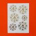 中台八葉院をシールにしました。 スマホに貼るのにぴったり!のサイズ。 中台八葉院(ちゅうだいはちよういん)とは、両界曼荼羅の一つである胎蔵曼荼羅の中央に位置する区画。 中央に大日如来、その周りを四如来(宝幢如来、開敷華王如来、無量寿如来、天鼓雷音如来)と 四菩薩(普賢菩薩、文殊菩薩、観自在菩薩、弥勒菩薩)が囲んでいます。これをそれぞれの仏様を表す種字(大日如来 アーンク、宝幢如来 ア、開敷華王如来 アー、無量寿如来 アン、天鼓雷音如来 アク、普賢菩薩 アン、文殊菩薩 ア、観自在菩薩 ボ、弥勒菩薩 ユ)に置き換えたものです。 A6判のシートに直径50mmのものを3点、直径40mmのものを2点、直径30mmのものを1点収録しています。手帳、名刺入れ、鏡、パソコンなど身近なものに貼って常時身につけてみてください。写真2は直径50mmのものをiPhone7のスマホケースに貼った例です。 絵柄部分は金の箔を押しています。 【素材】 PETフィルム 箔 スタンピングリーフ 【サイズ】 幅105×高さ148mm(A6判) 【購入の際の注意点】 写真と実物では多少色味が異なる場合があります。 市販のレーザープリンタを使って透明シール用紙に印刷し、箔押ししているので、精密さに欠けるところがあります。 制作工程上、どうしても余分に箔押しされているところ、箔押しが抜けているところが発生してしまいます。あらかじめご了承のうえ購入をお願いします。