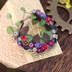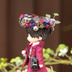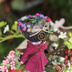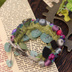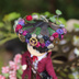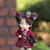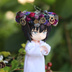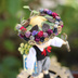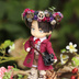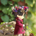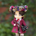 スチームパンクやハロウィンを意識し、ダークなお花と歯車を組み合わせた小さなドールサイズの花冠のです。 おすすめコーデは赤や茶色などの暖色系、スチームパンクが似合います。 歯車はゴールドとアンティークゴールドの2色がついており、一つ一つ細いワイヤーで固定してあります。 薔薇は一輪一輪すべて手染め、手描きでコテをあてて制作しております。また、葉っぱも手作りです。 隙間を埋めているグリーンの一部や後ろにぴょーんと跳ねているツタのようなグリーンは強度の関係からフェイクグリーンを採用しております。 ドールに見合うサイズ感を出すために通常の花よりもかなり小さなサイズで制作いたしました。花の直径はそれぞれ1㎝程です。 小さな木の実は刺繍玉です。 刺繍玉について・・・ 当工房では長年、『小人の花冠に木の実を加えることは出来ないか』というのが課題でした。 本物の木の実は素敵だけれどサイズの種類に限界がある、造花の木の実はキレイだけれど特別感に欠ける・・・色々考えてこの度採用に至ったのが『刺繍玉』です。 『刺繍玉』は木のビーズに刺繍糸を何重にも巻いてキレイな糸の玉を作り出す技法です。手芸屋さんで刺繍糸を見たことがある方ならお分かりいただけると思いますが、刺繍糸の種類は赤色1つとっても10種近く展開されております。したがって刺繍玉は、ほぼどんな色の実も実らせることができる素晴らしい技法です。 花冠全体の芯に太いワイヤーが1本入っております。通常のニッパーでは全く歯が立たず、専用の工具じゃなければ切断できない太さのワイヤーです。そのワイヤーが芯になっているので全体的にしっかりとした作りです。 各ドールの微妙なヘッドサイズに対応するため、花冠の内部ワイヤーは全円ではなく後ろ部分を切断しております。 こうすることによって個々の微妙なヘッドサイズに合わせることが出来ます。切断部分はフレンチリネンの紐を通し、かわいくリボンを結んであります。 このリボンは結び直しが難しいため固定です。先端はボンドで留めてあります。 後ろについている大きめの歯車は重さのバランスを撮る役目も果たしております。 内径・・・約4.4㎝(全円ではなくワイヤーが一部切れている作りなので多少の調整可能) 外直径・・・約6.5㎝ 高さ・・・約2㎝ 重さ・・・14グラム 主な素材 サテン・・・主に花びらに使用。落ち着いた艶があり、本物の植物に近い質感が出る。 コットン・・・主に葉っぱに使用。素朴な生地でカントリー風の印象。 刺繍糸 ウッドビーズ アートフラワー用のワイヤー 布花1輪、刺繍玉1つ作るのはさして難しいことではありません。が!それを花冠に編み上げるのはものすごく難しい作業です。全体のバランスと配色を考え、少し組み合わせてはまた新しい色の花や実を作り足して試す、その繰り返しでようやく小人に似合うひとつの輪が完成します。 当工房は大好きなキャラのおびたん達が、森の中の小さなお家でお花を育てたり、畑を作ったり、お裁縫したりしてのんびり暮らしているイメージでハンドメイド活動をしています。 制作のきっかけ・・・ ちいさなドール達に合うサイズの花冠が作りたくて、最初は小さなプリザーブドフラワーやドライフラワー、造花などを集めて花冠を制作しておりましたが、いかんせんこの世界には『人間サイズ』の花しか無いので既製品や自然素材の花での制作に限界を感じ、それならば花から自分の手で作ってみよう! と思い立ったのがこちらの『小人の世界のお花』シリーズを作るきっかけになりました。 Twitter、インスタグラムで制作風景や小人の日常風景撮っております。 https://twitter.com/ninngyoumusume https://www.instagram.com/ninngyoumusume/