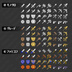 12px×12pxのマイクロドット素材です。 武器1種類につき3ステップの進化差分を用意しております。 ・カラー:モノクロ, 金銀銅, ファミコン風の3種類 ・サイズ:12px, 24px, 32px ※24pxサイズは,12pxサイズを2倍にしたものです。 ※32pxサイズは,24pxサイズに余白を足したものです。 32px素材はぜひフレーム素材と併用してご利用ください! ◆アイコンのイメージ ①剣 ②短剣 ③盾A ④盾B ⑤斧 ⑥ハンマー ⑦杖A ⑧杖B ⑨槍 ⑩ツルハシ ⑪弓矢 ⑫銃 【利用規約】 【OK】 ・素材の加工,改変はご自由にどうぞ! ・ゲーム向けの素材ですが、動画や印刷物等での利用もOKです。 ・有償作品での利用も可能です。 ・著作表示はあってもなくても大丈夫です! 【NG】 ・加工の有無に問わず 本素材の再配布,販売は禁止です。 ※ゲーム等に使用する場合はファイルの暗号化をお願いします。 ・本素材を利用したグッズ等の配布販売は禁止です。 ・素材集としての再配布や販売も禁止です。 ・会社開発でのご利用はご遠慮ください。 ・著作権は放棄しておりません。素材の製作者を偽る行為は禁止です。 【免責事項】 これらの素材の利用により生じた損害などに対して当方は一切責任を負いません。
