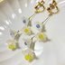 青×黄カラーを意識したイヤリングです。 普段使いも可能なデザインになっています。 常に概念を身につけていたい人向けです。 花びらビーズとカルセドニービーズを使用しています! イヤリングパーツを含めないチャームの大きさは約5cmです。 ご覧の端末によって、色味の見え方に差がございます。ご注意ください。 サージカルステンレスの通常ピアス・フックピアス・ノンホールピアス(樹脂イヤリング)も用意してあります!写真4枚目を御参照ください! ピアス・フックピアスを希望される方は、お手数ですが購入後にメッセージにてその趣旨をお知らせください。 ノンホールピアス(樹脂イヤリング)を希望される方は、こちらのページと合わせてご購入ください。 https://booth.pm/ja/items/3168060 ※ご要望が無ければ、写真のバネ付きイヤリングでご用意させていただきます。