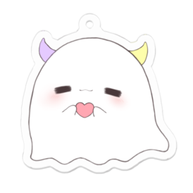 おばけちゃんのアクリルキーホルダーです👻 バリエーション②です。 実際の商品はおばけちゃん①の商品の2枚目に画像あります。 (※加工されてる写真の為イメージと異なる場合があります) この商品はpixivFACTORYで作られた商品です。サンプル画像は完成イメージのため、実物と異なる場合があります。