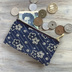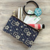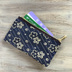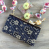 【ブルーフラワー】畳縁 ぺたんこ ミニポーチ カードケース 小銭入れ 和風 藍色 紺 花 絣模様