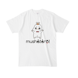 むしゃたろうが真ん中にデザインされた、かわいいTシャツです! むしゃたろう布教にはいちばんのアイテムだ〜〜〜〜!!