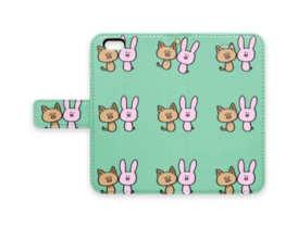 手帳型iPhoneケース - iPhone7 - ストラップ穴 ありねこさんとうさぎさんのiPhoneケースになります。 アクキーと同じデザインです。 iPhone6とiPhone7に対応しています。 どちらもストラップ穴がついてます。 この商品はpixivFACTORYで作られた商品です。サンプル画像は完成イメージのため、実物と異なる場合があります。