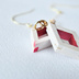 組子ピアス・イヤリング 一文字則宗 一文字則宗をイメージしたピアスとイヤリングです。 顔彩の白、紅玉色で塗装をしたあと、ラッカースプレーでコートしてあります。 下側のスリットに見立てた紅の塗装がポイントになります。 【ご注意】 ・素人の手作業によるハンドメイド品です。極力注意してはおりますが、個体差により歪み、ズレなどがある場合がございます。ご了承いただけますようお願い致します。 ・素材にはヒノキを利用しております。薄い材料を使用しているため、強い力が加わると割れ、欠けが生じる可能性があります。お取り扱いにはご注意ください。 ・組子部分は顔彩着色の上からラッカー塗装をしておりますが、汗や水には弱いのでご注意ください。 サイズ:ピアス、イヤリング共に55㎜ 素材:桧、金属パーツ