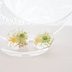 色鮮やかなスターフラワーとカスミ草をレジンで閉じ込めた耳飾りです。 癒し系のグリーンと明るいイエロー色の花々が耳元に咲いているようなイメージになります。 本物のお花を使用した作品なので、再販の場合は写真と差異が出ることがございます。 <素材> プリザーブドスターフラワー、カスミ草、 ピアス金具(チタン、金属アレルギー対応)・イヤリング金具(真鍮) <サイズ> 約22mm <配送のご案内> 香港より世界中に国際航空便でお届けします。 発送より7日前後でお届け予定です。 ※新型コロナウイルス感染症に伴う航空機の減便によって、お荷物のお届けが遅れる場合がございます。お時間に余裕を持ってご注文いただきますようお願いいたします。