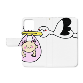 手帳型iPhone12ケース コウノトリ運ぶ