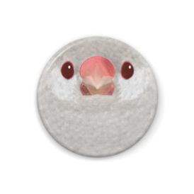 文鳥、イノ、メス【まるい鳥の正面の缶バッチ】