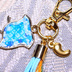 明るく華やかな色合いです。 バッグチャームやキーホルダー等、バッグのみならず好きな場所に使って下さい。軽い仕上がりです。 千代紙を封入した千鳥のレジンチャームの付いた、可愛くて軽めのバッグチャームです。 キラキラの封入パーツやネイルシールなどを使って、華やかに仕上げました。裏表柄違いです。 タッセルもお手製で、綿糸がメインの長めのカラフルな仕上がりになっています。 同じには作れませんので、各1点限りとなります。 気になる方はお早目の御購入を検討願います。 ●共通サイズ● ナスカン:全長38mm フック内径7mm タッセル径:6mm チャーム:くちばしから足先まで24mm 羽上下方向26mm 勾玉パーツ縦幅11mm ●タッセル長さ(カン含まず)● 水色:8.3cm 楓:8.4cm 紫:8.4cm