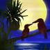 リュウキュウアカショウビンのカップルが、夜風に吹かれてくちばしを寄せ合います。自慢の鳴き声で愛を語らっているのでしょうか。恋の歌声は、さらに美しく月を輝かせるのでしょうね。