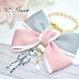 2022年3月21日に開催されるwebオンリー <純度321%【弐】>にて頒布します。3月21日0時以降に注文可能となります。 雑伊をイメージしたカラーリングのリボンのバッグチャームです。 リボンには白ラインが入っており、二人を巡り合わせた包帯をイメージして選びました。コーちゃん風パーツと手裏剣モチーフを添え、遊びゴコロのあるデザインに仕上げました。 チェーンがあるため、どんなバックにも付けやすいです。 *サイズ リボン本体:縦/約8cm 横/約10-11cm チェーン:約13.5cm(内、ナスカン約23mm) *ハンドメイド品ゆえ、完全な左右対称ではなく多少のずれがあります。 *熱処理について:リボンの端を火で炙ることで溶かしています。これにより、リボンのほつれ防止となります。