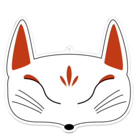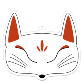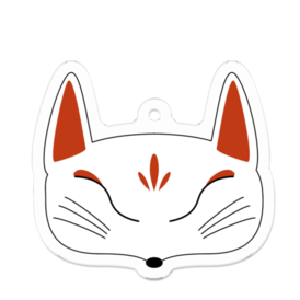 白狐面のアクリルキーホルダー。 白狐面、赤狐面、黒狐面を販売中。