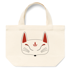 白狐面のトートバッグ。 白狐面、赤狐面、黒狐面を販売中。