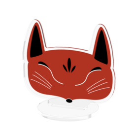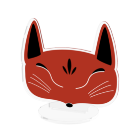 赤狐面のアクリルフィギュア。 白狐面、赤狐面、黒狐面を販売中。