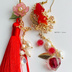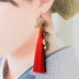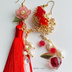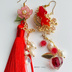 紅金魚と鬼灯と蓮の和風ピアス イヤリング 蝶々と淡水パール、ロングタッセル付き 着物や袴 成人式の和装小物にも★