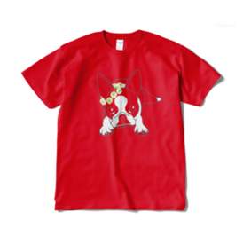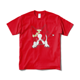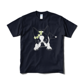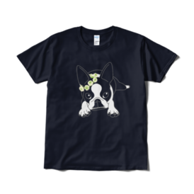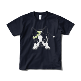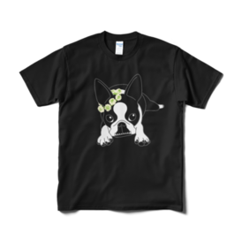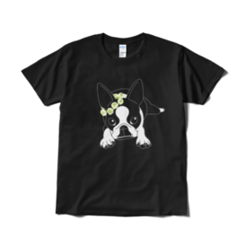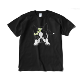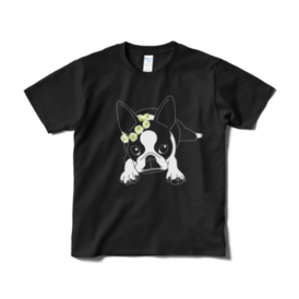 Tシャツ(短納期)-ボストンテリアのコチ(花冠/濃背景用)[v2.7.5k]