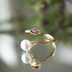 鶴丸と大俱利伽羅をイメージしたリングになります。 フリーサイズで、柔らかい素材で調節しやすいです。 龍のような形のレッドとクリアのキュービックジルコニアと てりの美しい淡水パールの メッキが美しいk14gfのオープンリングです。 素材 k14gリング 淡水パール キュービックジルコニア サイズ フリー 淡水パールについて 綺麗な艶感が見られる淡水パールですが 縞やキズ、凹みが少しございます。 ちょっと可愛らしくないものは取り除いておりますが、 こちらは天然石の魅力、個性だと思って大事にしていただけると幸いです。 【フォークリング(オープンリング)】とは 上部が開いていて、Cのような形になっているリングのことです。 多少のサイズ調整ができますので、関節が太く指輪選びに悩んでいた方でも 自分の指にピッタリのサイズで着けられます! 付け根のラインが隠れるので、指が細く見えるのもポイントです! 基本的には、指の付け根で着けますが アレンジで、ファランジリングとしても着けられます。 【K14gf(ゴールドフィルド)とは】 真鍮に14Kのゴールド圧着したもので、その金の重量が総重量の20分の1以上の場合、ゴールドフィルド(金張り)と呼ばれています。メッキよりも丈夫という特徴があり、アレルギーを起こしにくいです。