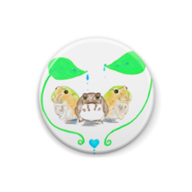 カエルたちの雨宿り缶バッジです! この商品はpixivFACTORYで作られた商品です。サンプル画像は完成イメージのため、実物と異なる場合があります。