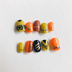 大地を統べる百獣の王やアフリカの雄大さをイメージしたネイルチップです イエロー、オレンジ、ブラックをベースに、アフリカ感のある文様やインスパイアされた作品の概念を取り入れたオリジナルデザインで制作しています 普段ネイルができない方や、気軽にデザインを変更したい方に💅 旅行やデート、様々なシーンで気軽にオシャレができるので、ネイルチップはおすすめです! ----------- ⚠️下記必ずご確認ください 〜ご注文までの流れ〜 ①ご希望のネイルチップの形を選択してください ショートオーバル or ベリーショート 《参考》 *ショートオーバル…自爪より少し長めのサイズ(自爪縦幅+3mm程)。デザインが映えます。 *ベリーショート…ほぼ自爪と同じサイズ(自爪縦幅+1mm程)。初心者向けです。自爪の長さによっては合わない場合もあるので、爪のサイズ指定にお気をつけください。 ②ネイルチップのサイズをご教示ください 《爪の測り方》 メジャーで爪の縦幅・横カーブ幅を測り、画像サイズ表にて確認いただきます。 *サイズが不安な方はワンサイズ大きめのものをお勧めします。お手元に届き次第、ご自身でサイズ調整(ネイルファイル等で周りを削る)が可能です ③注文時、「①チップの形」と「②ご希望サイズ番号」をご記載ください 例…ショートオーバル 右手親指から2,6,5,5,7 左手親指から2,6,6,5,7 *チップ接着用のシール・グミ・グルーは付きません。100円ショップ等で販売されていますので、ご自身に合うものを検討の上、別途ご購入ください。