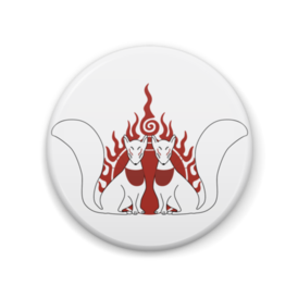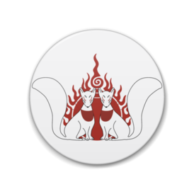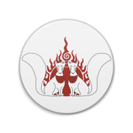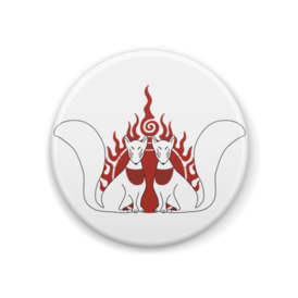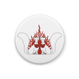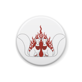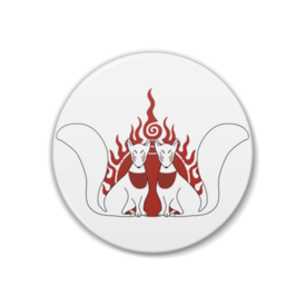 御札狐 缶バッジ。 狛狐の二匹と火焔宝珠柄。