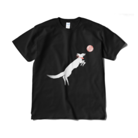 狐の手毬唄 -狛狐- Tシャツ(短納期) ブラック