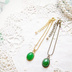水に浮かぶ緑。 アベンチュリンの様なマーブル模様が綺麗なカボションは 国産ヴィンテージガラス。 水面に浮かぶ水草の様な、綺麗なグリーンです。 (ぬぺっとした質感の蛙の様な) シンプルに枠チャームに貼り付けて。 華奢なカットボールチェーンでネックレスに仕立てました。 ゴールドと金古美の2種類のカラーで製作しました。 金具カラーが変わると印象が違って見えるのが面白いですね。 コロンと小さなサイズ感で、ちょうどいい。 白シャツにサラッとシンプルに合わせるもよし、 ロングネックレスとじゃらっと重ね付けするのもいいですね。 褐色のお嬢さんやお兄さんが付けても映えそうですね。 幼SD~SD17位迄 1.0mm幅カットボールチェーン 約10cm+アジャスター カボション(国産ヴィンテージアクリル):8×6mm アジャスターの先には3mmパールビーズを使用。 金具:ゴールドカラー/金古美カラー(メッキ) ※カボションの貼り付けにはボンドを使用しています。 ネックレス部分のサイズ調整可能です(長さにより有償)。 金具カラーをシルバー色へ変更オーダー可能。 ご希望の方はメッセージにてご連絡頂くか、事前にお問い合わせ下さい。 「在庫切れ」・「お問い合わせ下さい」と表示されている商品については、 材料の在庫次第で作製可能のものもございます。 お気軽にお問い合わせ下さい。 ※受注製作となります。