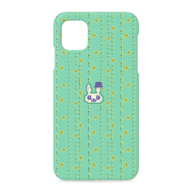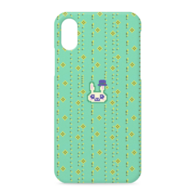 【しあわせうさぎ】iPhoneケース(green〜お気に入りの帽子・blue)