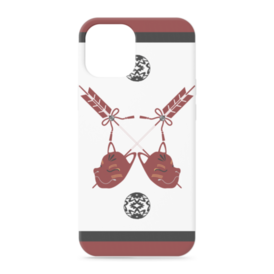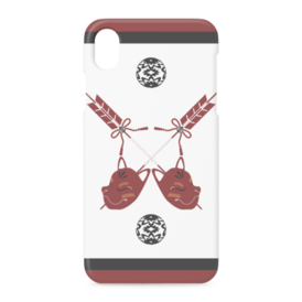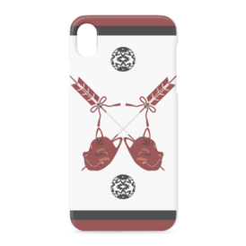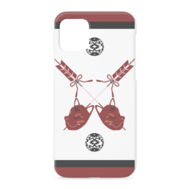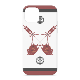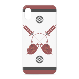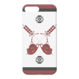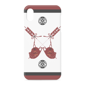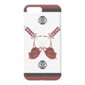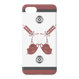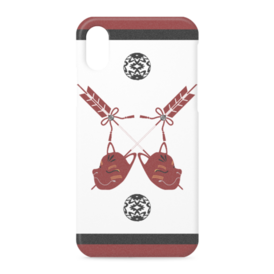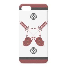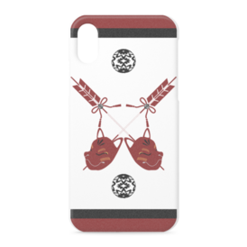 赤狐のお面 iPhoneケース。 赤狐のお面と破魔矢のイラスト。