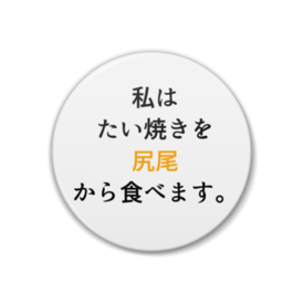 たい焼きを尻尾から食べる人向けの缶バッジです。
