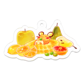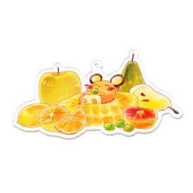 デデンネがフルーツの上でおねんねしているアクリルキーホルダーです。 この商品はpixivFACTORYで作られた商品です。サンプル画像は完成イメージのため、実物と異なる場合があります。