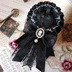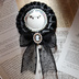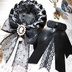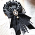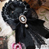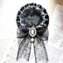 缶バッチ用ロゼット ブラックをテーマカラーに仕立てました。 ブラックオーガンジーを重ねたフリルや黒レース、シースルーのドットのリボンを使って透け感を重視し、黒をメインにしつつも重くなりすぎないように気をつけて制作致しました。 中心のカメオで高級感を意識し、パールを使用することで缶バッチカバーでパールを使用した際にもバランスが取れるデザインになっています。 リボンは着脱式でシースルードットのみorシースルードット+長テールでご使用いただけます。 磁石での着脱になっており、普通のご使用では問題ございませんが 人が大勢行き交う場所でのご使用はテールが取れてしまう可能性がございますので、非着用もしくはご自身で安全ピン等での固定をお願い致します。