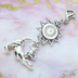 のび猫シルエットのモチーフと中心にターコイズをはめ込んであるひまわりのモチーフを組み合わせたチャームです シンプルでスッキリとしつつもしっかりと猫好きをアピール出来るチャームに仕上がっています ターコイズの蒼い輝きとシルバーカラーのベストマッチングの色彩です 軽量なのでマスクのヒモにつけてもさほど重さを感じることなくご利用いただけます ※金具などはスチール製ですので、金属アレルギーの方はご注意ください ※こちらは金具のカニカンをナスカン(約22mm)に変更が可能です。フィット型のヒモ部分が広いマスクに適しています ナスカンに変えればキーホルダーとしてご利用いただけます 「素材」 モチーフ:亜鉛合金:メッキ加工 ターコイズ 金具:真鍮等(パーツなど) 「寸法」 全長サイズ(カニカン含む):約43mm 猫モチーフ:約17mm×14mm ひまわりモチーフ:直径約:13mm 重量:約3.3グラム ※ご使用のモニターの色の違いにより、実際の商品と色味が若干異なる場合がございます。予めご了承ください NN-MC112