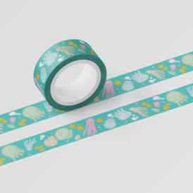 くらげのゆるいマスキングテープです。 ※この商品はpixivFACTORYで作られた商品です。サンプル画像は完成イメージのため、実物と異なる場合があります。