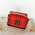 タータンチェックとデニムのキャラメルポーチ
