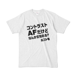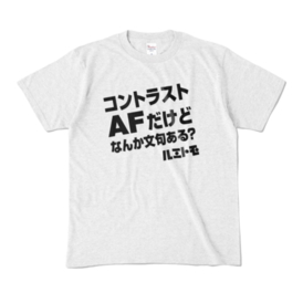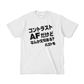 「コントラストAFだけどなんか文句ある?」 No!!! と言って欲しいTシャツ。 アッシュカラーバージョンです。 この商品はpixivFACTORYで作られた商品です。サンプル画像は完成イメージのため、実物と異なる場合があります。