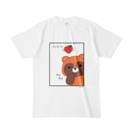 恥ずかしがり屋のぽんたんと応援しているあっぴぃのTシャツです🦝🍎 この商品はpixivFACTORYで作られた商品です。サンプル画像は完成イメージのため、実物と異なる場合があります。