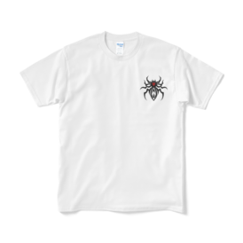 蜘蛛のロゴが入ったロゴシャツになります。 この商品はpixivFACTORYで作られた商品です。サンプル画像は完成イメージのため、実物と異なる場合があります。