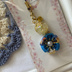つまみ細工のお花のストラップ 青黄