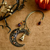 【1点もの】猫と三日月のハロウィン イヤーフック(高品質クリスタル使用)
