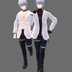 sode slim系 →袖がスリムになります。2種類あります。併用はしないでください。 eri down系 →襟が下に下がります。2種類あります。併用はしないでください。 他、裾をスリムにしたり腋をスリムにしたりするシェイプキーもあります。 ※シェイプキー使用により貫通する可能性が出てくるのでその際はシェイプキー調整やボディ側のシェイプキー調整をしてください。