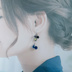 チェコビーズとお星様とブルーゴールドストーンのブルー色ゆらゆらピアス/イヤリング